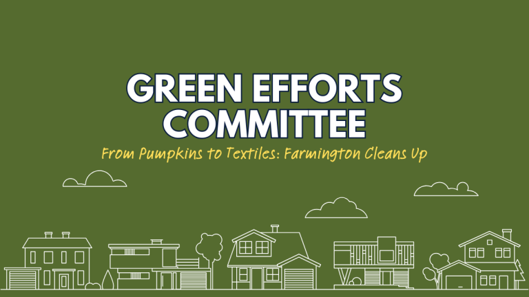 Farmington’s Green Efforts Committee set April 25, 2026 for Town-Wide Clean-Up, reported 5,500 pounds of textiles recycled, and discussed expanding school composting.